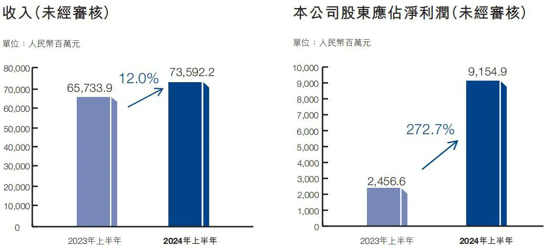 上半年,中国宏桥实现营收735.9亿元,同比增长12%;净利润达到91.5亿元,同比飙升273%。