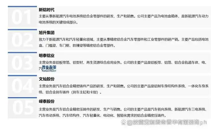 行业内主要企业有新铝时代、旭升集团、明泰铝业、文灿股份、嵘泰股份等企业。